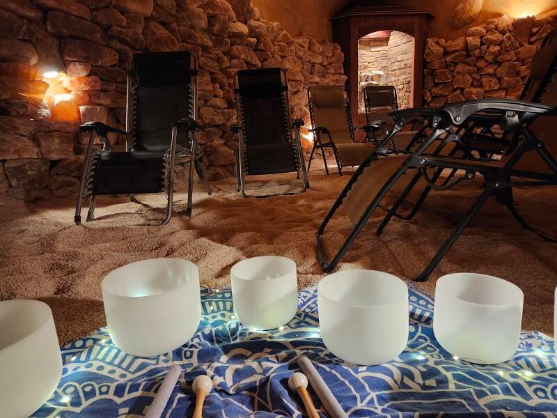 Experience ultimate relaxation with a Sound Bath in a Himalayan Salt Cave. Immerse yourself in soothing sounds and the healing power of salt therapy. Book your session today for rejuvenation like never before (the spa requires a TWO person minimum):
